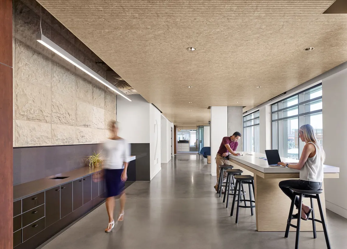 Amber’s projects begin not with a floorplan, but with deep, immersive research. “I always fight for a lengthy pre-design phase,” she says. That means moving beyond stakeholder interviews and engaging in everything from focus groups and surveys to observing and even shadowing employees. In one case, she even underwent onboarding as if she were a new employee at the client’s company.