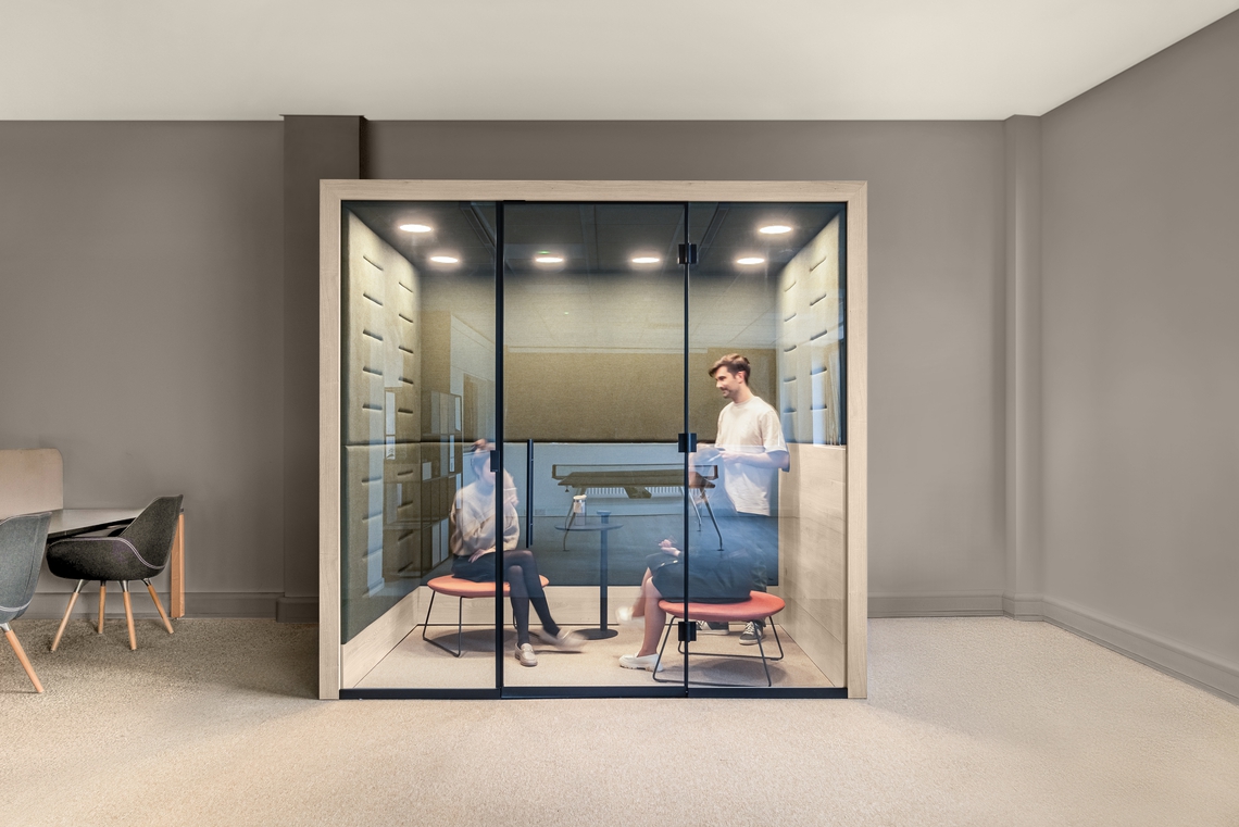 Accessible and hugely customizable, this meeting booth is the answer to those small meetings or private working requirements