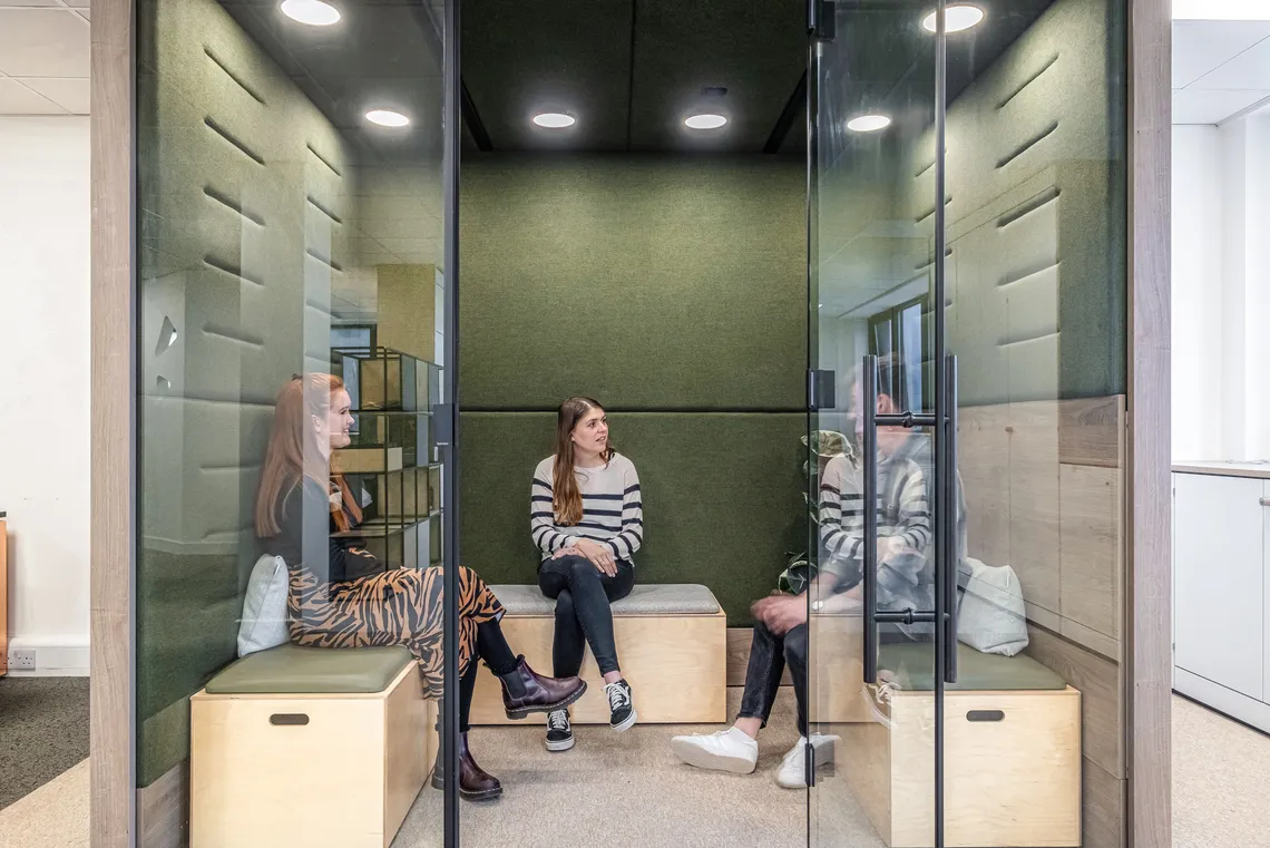 In today’s workspace, the majority of large meeting rooms are often occupied by just one or two people, who simply need somewhere they can shut the door on distractions and be assured of a private meeting space.