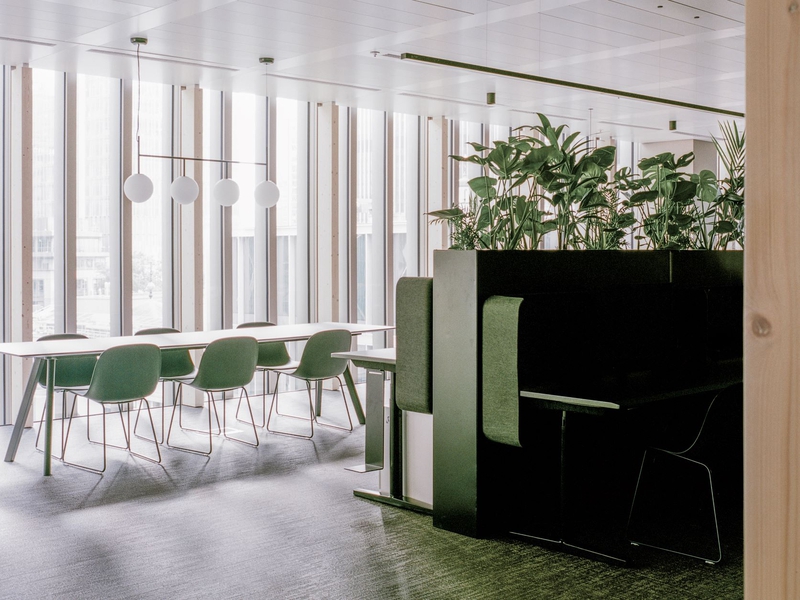 Biophillic Design: Not Just a Pretty Face. A tour of our London Design Centre by Vantage Spaces, navigated the science behind biophillic presence in the workplace. From expansive living walls, to Envirogrid creating a green ceiling, the swathes and touches of green in each area initiate the soft and calming atmosphere so tangibly prevalent in the space. For benefits far beyond aesthetics, biophilic design is paramount for air quality, wellbeing, biodiversity and employee connection.