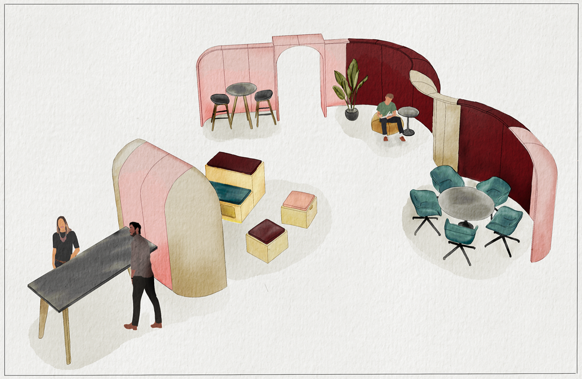 The new goal is physical change overnight at no cost to the organization. The number of people in the workplace is dynamic, increasingly driven by employee choice of when and where to work, so the workplace needs to accommodate many employees with effective places to collaborate, socialize, and focus. To achieve this modular furniture and design is key.