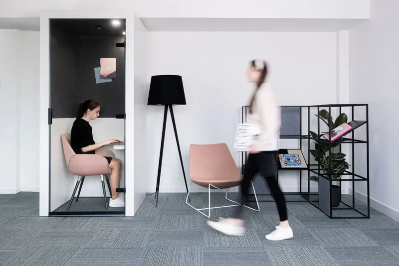 Companies can embrace an open and flexible office design by investing in zoning furniture, acting as versatile partitions that replace traditional, inflexible walls. The impact of this can be seen at the Woodland Trust’s Grantham offices, which uses our Palisades II space divider to offer a dynamic alternative to walls, avoiding the drawbacks of light-blocking and aesthetically uninspiring barriers. Maintaining designated areas for quiet, solo, or one-to-one work is still essential, and innovative solutions like Spacestor's Residence office pod and booth family address these needs without relying on traditional walls. Additionally, furniture such as Aeonica provides a reconfigurable space that serves as a visually appealing focal point in the office, seamlessly blending function and fashion.