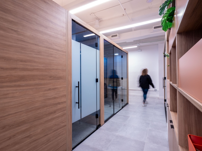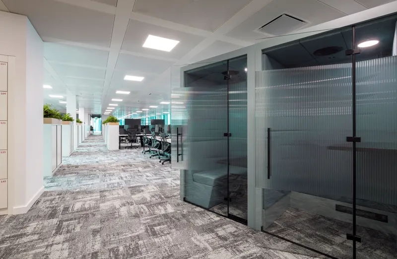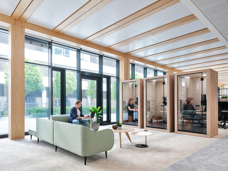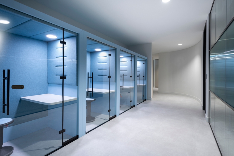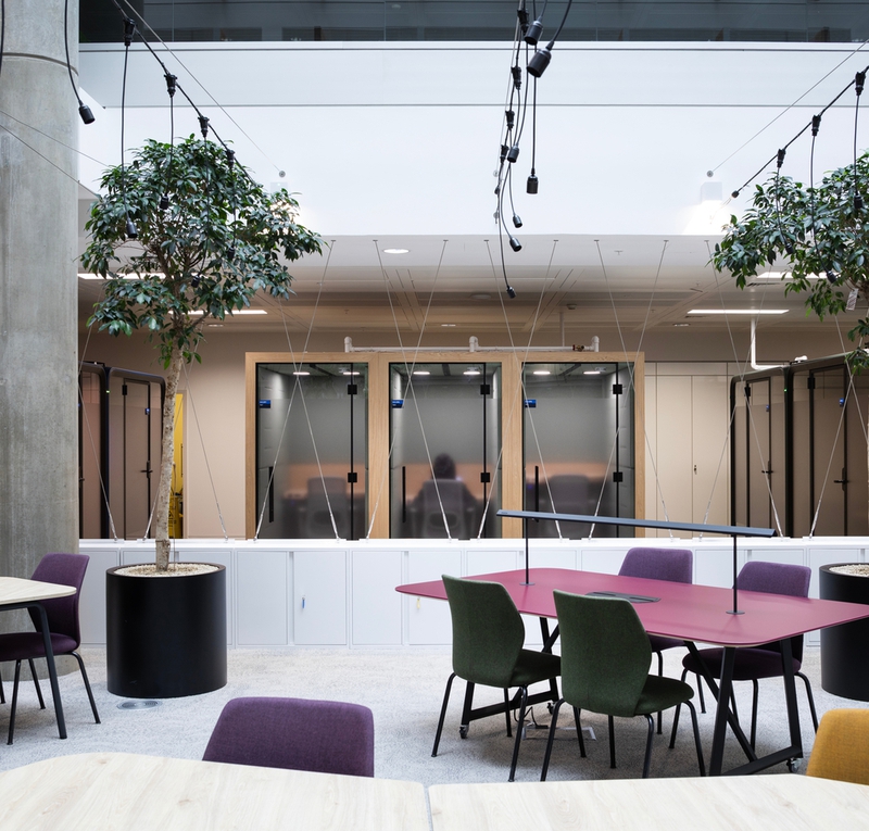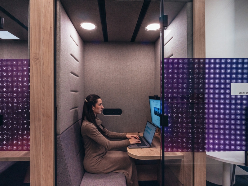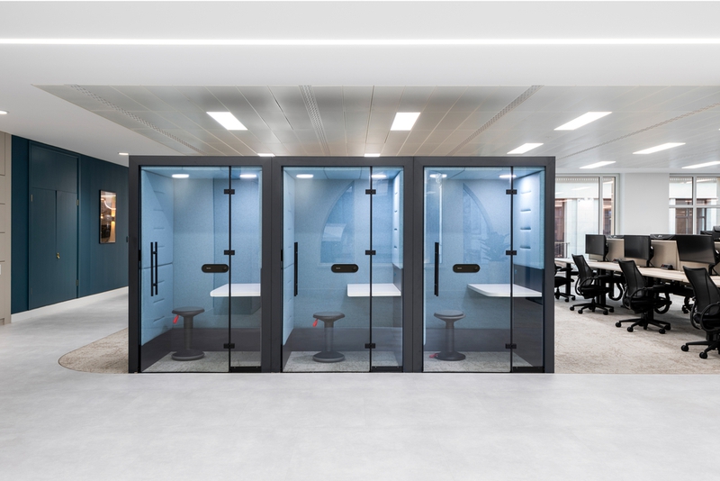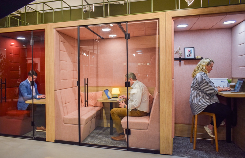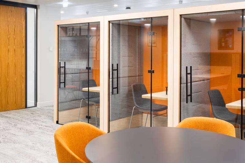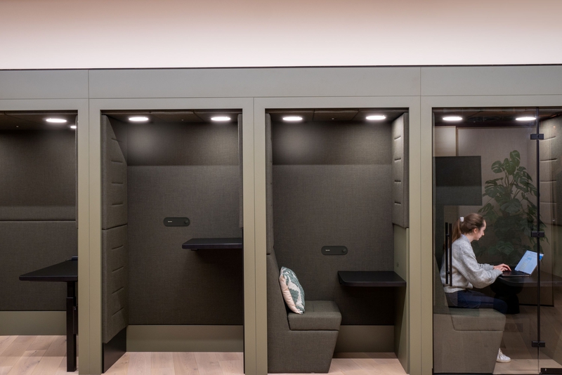 A flexible collection of quiet spaces catering to employee choice through a variety of individual spaces. A private oasis for focus whilst retaining a sense of connection.