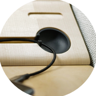 The easy-to-use buttons and knobs, make the pod intuitive to personalise. Lighting, ventilation, desk height and screen height can all be adjusted at the press of a button to create a tailored environment suited to your needs.