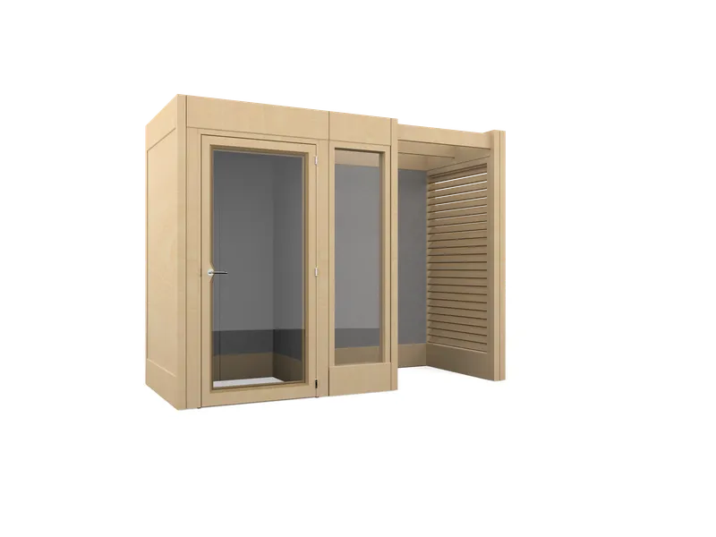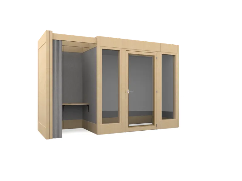 Verandas is essentially a kit of parts that can flex and adapt to the evolving needs of any organisation. The framework can grow to almost any size, from an individual pod to a 12 person meeting room and beyond, adapting and flexing in tandem with any team. The high acoustic qualities of each panel means the exterior walls can be activated to form additional work settings like scrum spaces, touchdown zones or even storage areas.