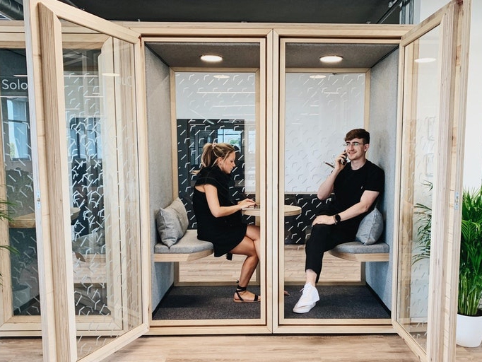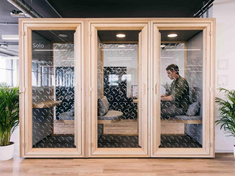 A 1-person, private booth for focus work or phonecalls