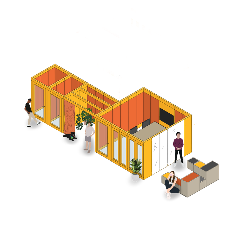 Verandas is essentially a kit of parts that can flex and adapt to the evolving needs of any organisation. The framework can grow to almost any size, from an individual pod to a 12 person meeting room and beyond, adapting and flexing in tandem with any team. The high acoustic qualities of each panel means the exterior walls can be activated to form additional work settings like scrum spaces, touchdown zones or even storage areas.