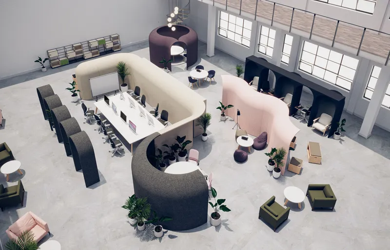 Spacestor worked closely with Area to provide semi enclosed working space created from one of their newest and most innovative products, Aeonica
