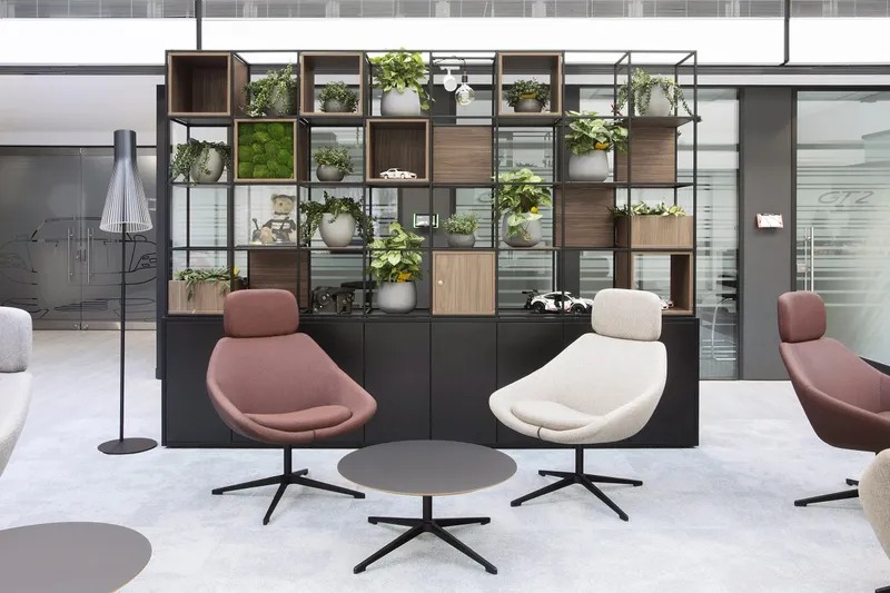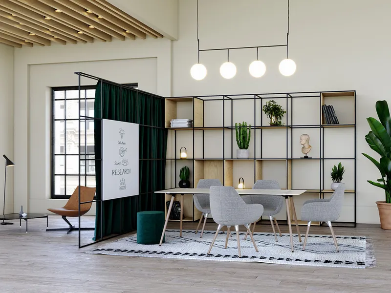 The workplace of today is not simply a space for employees to get work done, but needs to deliver an awesome experience through design. This new landscape demands a softer, less corporate, more flexible look and feel. Couple with this is the need for agility; organizations need flexible spaces that can be used in multiple ways. Palisades II is a space-defining solution, available in both linear and curved variations, it's an elegant expression of architecture within architecture, allowing for the simple, attractive division of space without building walls. Palisades II gives designers the choice to create a multiplicity of space types, using both the positive and negative spaces formed by these divisions to curate the perfect meeting space, touchdown area or central courtyard. A whole host of accessories provide the tools to curate a configuration that is totally unique whilst portraying your brand story. Archways, curtains and biophilia add a soft touch and acoustic protection, whilst TV Alcoves, shelving and storage cater to the essentials. Taking inspiration from the great mid-century modernist Californian designer Muriel Coleman, Palisades II brings Coleman's light, harmonious aesthetic into the ever-evolving workspace.