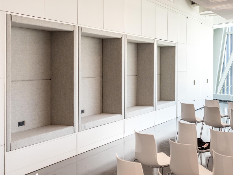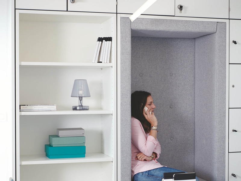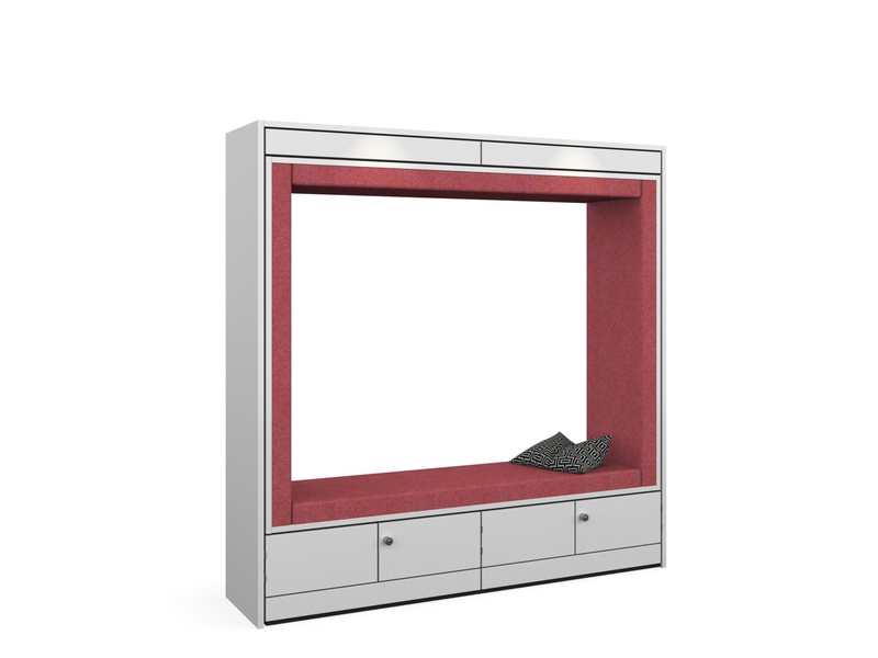 Is the open plan office trend really effective in creating the best working environment? Many companies are facing the same problem of a large open-plan space not providing the best environment for everyone’s unique working style. People should be at the heart of workplace design and a highly customized office space is key to suit differing needs. Today’s workspace needs to provide private spaces blended with collaborative zones. The Snugglestor provides a solution that is both innovative and space-saving. It’s an upholstered seating alcove that can serve as an impromptu meeting space as well as a quiet thinking area, used to break up a bland run of storage units. Or it can simply be used as a standalone design statement, a cosy hideaway highly customised to the look and feel of your workspace; available with or without a back, with options for extra storage below and above the alcove, and with a huge choice of different upholstery finishes.