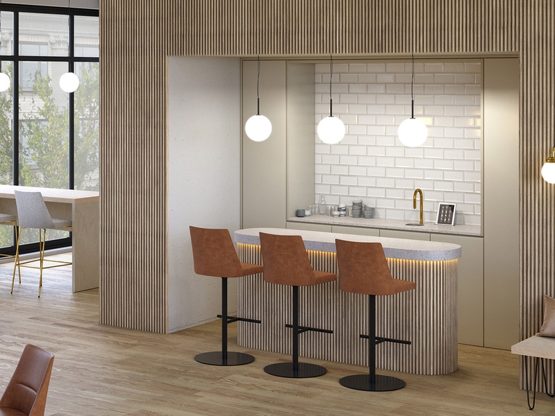 A hotspot for spontaneous, chance encounters or a functional work area in its own right. Spacestor’s modular refreshment points feature customizable facades, offering a cutting-edge aesthetic without the high cost or rigidity of bespoke joinery. These striking, high-impact designs integrate with leading beverage technologies, including app-controlled coffee taps. Built-in plinth and wall cavities easily accommodate water, waste, power, and data, with removable face panels for convenient access. More future-proof and flexible than traditional joinery, and more durable and customizable than standard kitchen units. Factory-built and thoroughly tested, each unit comes with a seven-year guarantee.