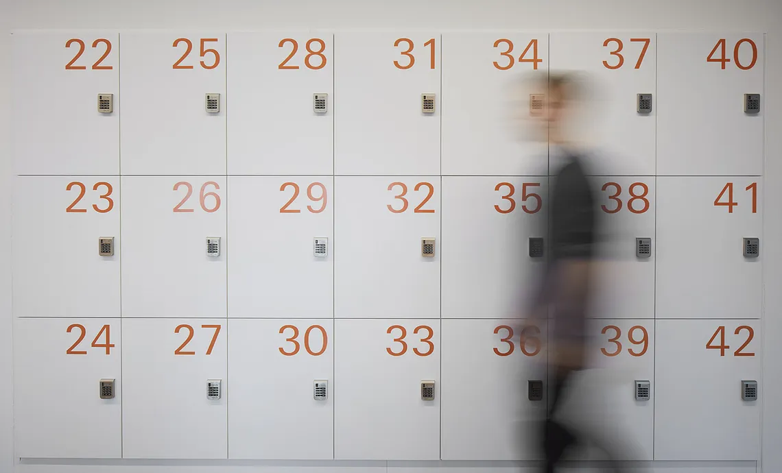 Interior Architects took all of this into account when designing the company's new offices in Chicago, resulting in a warm, soothing and familiar workplace that everybody can feel at home in. Staff can choose where they’d like to work, and in order to help facilitate this agility we installed a wall of customised HotLockers here. They’re numbered in deep orange in the company’s own font, and provide stylish personal storage for everybody working at this prestigious 156 year-old Swiss firm. As Interior Architects explain, “A bank of lockers, one for each staff, is discreetly woven into the open office design with minimal impact. Well received, this new way of working helps attract and retain talent and inspires staff to come to the office.”