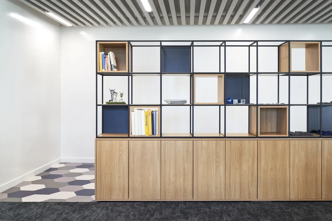 With a desire for collaboration zones for the growing teams, Spacestor Palisades II were chosen for their airy, space-dividing properties, combining the need for functional and aesthetic storage. Spacestor HotLockers in an elegant oak finish, mirror the Palisades, providing employees with safe storage and peace of mind for their personal belongings.