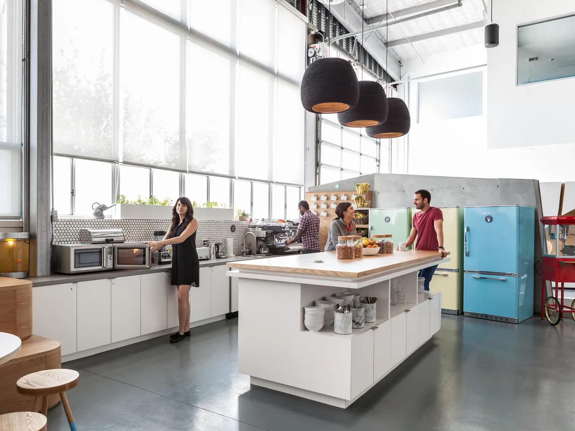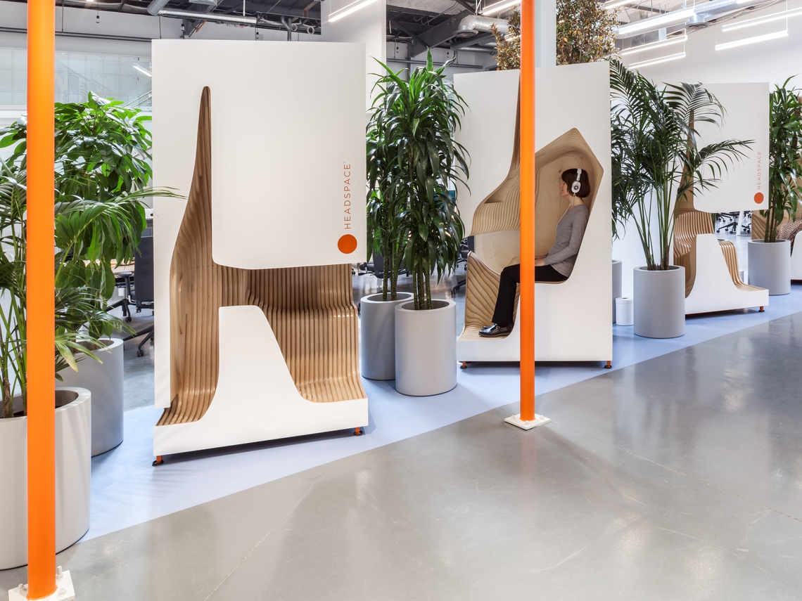 The new headquarters of California's meditation app provider, Headspace, designed by Kelly Robinson, feature the Railway Carriage reflecting the energetic vibe of the company.
