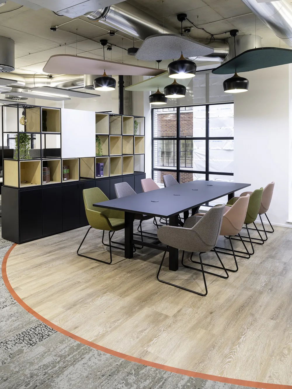 Piloting the scheme in different areas of the firm had revealed at least 21 different types of activities that were taking place, as well as a broad spectrum of personality types and preferences within the team. Space requirements were diverse and Kingsley Napley understood the variety of neighborhoods that would need to be created to fulfill these needs. Working with the design experts, KKS, we provided our Railway Carriage and Portals products to support these different spaces to work in.