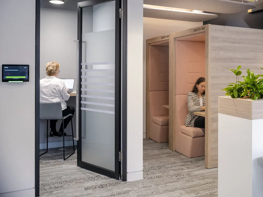 The Railway Carriage booths act both as an ideas hub for collaboration as well as a relaxed, focus space for concentration. With the same design aesthetic as the Portals range, they suite in well alongside each other whilst providing for different needs. Portals flexible family of individual protected working spaces connected to the buzz, but with sufficient privacy and space to complete productive work.