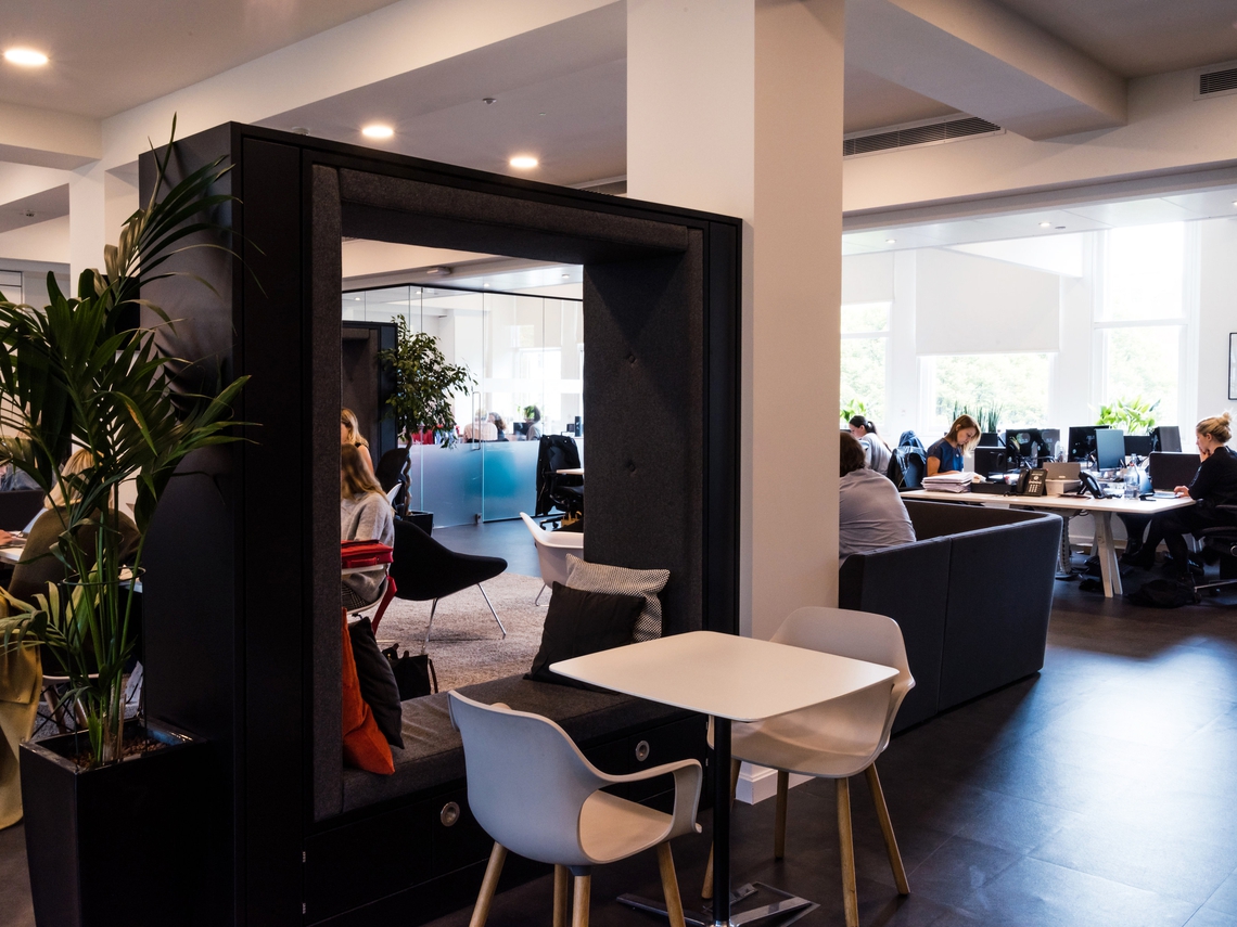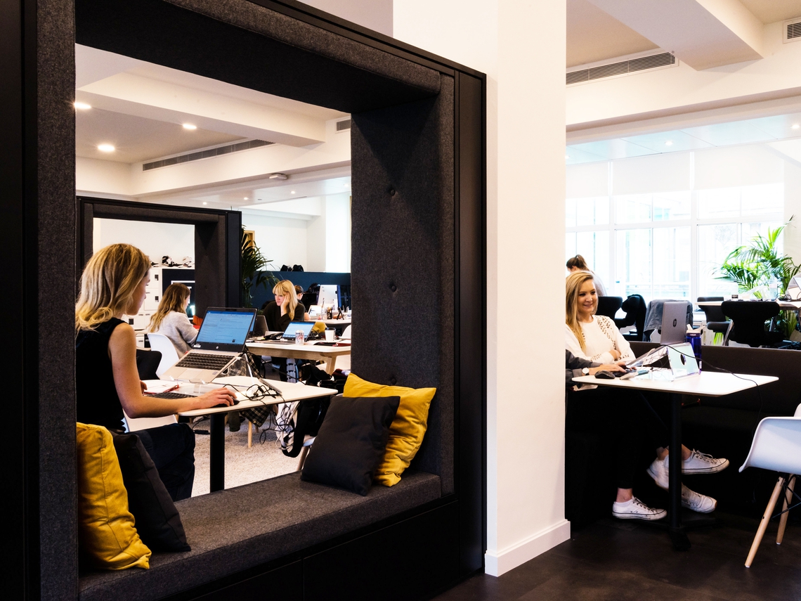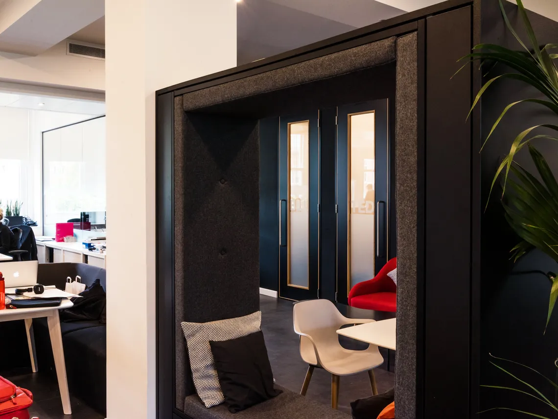 For this project we collaborated with Design & Build specialist Action Workspace to supply a black-clad Snugglestor  with dark grey upholstery. M&C Saatchi was founded according to one core principle – brutal simplicity of thought – and we have also long believed in the simplicity and adaptability of good design. This Snugglestor was not recessed into a wall but rather used as a standalone feature, as a zone divider in the open-plan space. Not only can one relax inside of it, the way it’s used here also frames the spaces around it – demonstrating how a simple, modular unit like our Snugglestor can be adapted to all kinds of different needs.