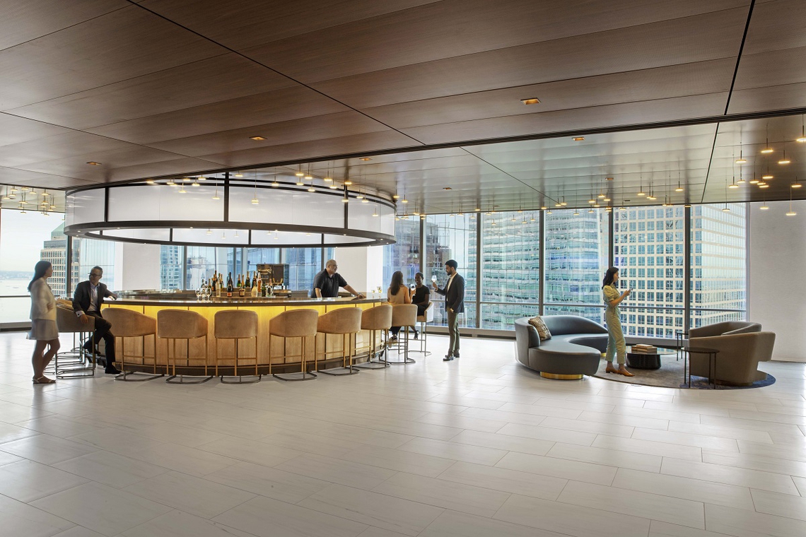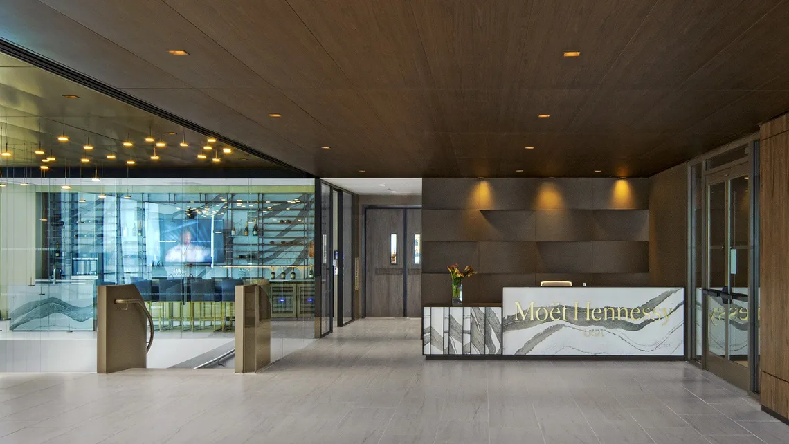 Based in the iconic building at 7 World Trade Center, luxury wine and spirits brand Moët Hennessey's move to downtown Manhattan, has allowed them to create a new workplace bringing together their world-class brands in a dynamic workplace experience. Turning to leading New York architecture firm, TPG, they have crafted the 35th and 36th floors into a space that embodies their collective culture, diversity and accomplishments. An aura of luxury begins right at the reception with effervescent lights, evoking images of champagne bubbles, floating down from the ceiling above.