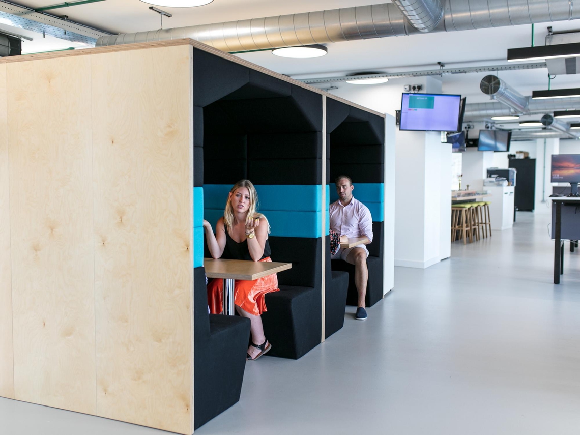 Spacestor were pleased to supply NEX with a pair of pine Railway Carriage meeting pods upholstered in black with a bright turquoise stripe, a couple walls of HotLockers for their staff’s personal storage, and some Storagewall and Forte cupboards for office storage with a slick, modern aesthetic. “Not only is it a wow-factor workplace that will help the team to attract and retain talent in a competitive Bristol tech market,” explain Interaction’s design team, “but it has set the standard for other office designs within Programme, Bristol, and the wider South West.”