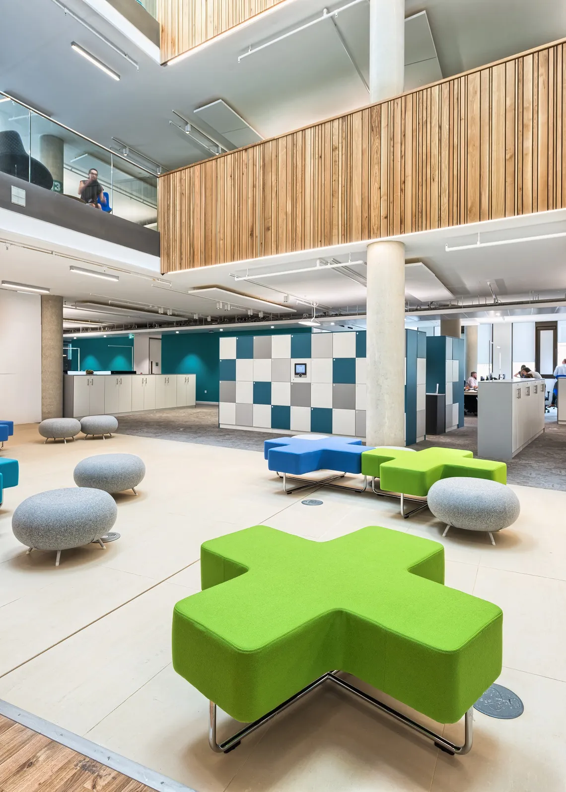 The monumental atrium and massive ceilings connote an open-minded feel and the mix of breakout, desk, and meeting spaces offers an adaptability - characteristic of employee demand in this return-to-office era. So, for Northampton County Council, it's onwards and upwards with a refreshed outlook on the sphere of workplace design.