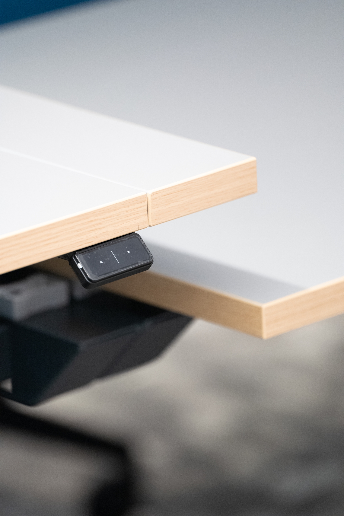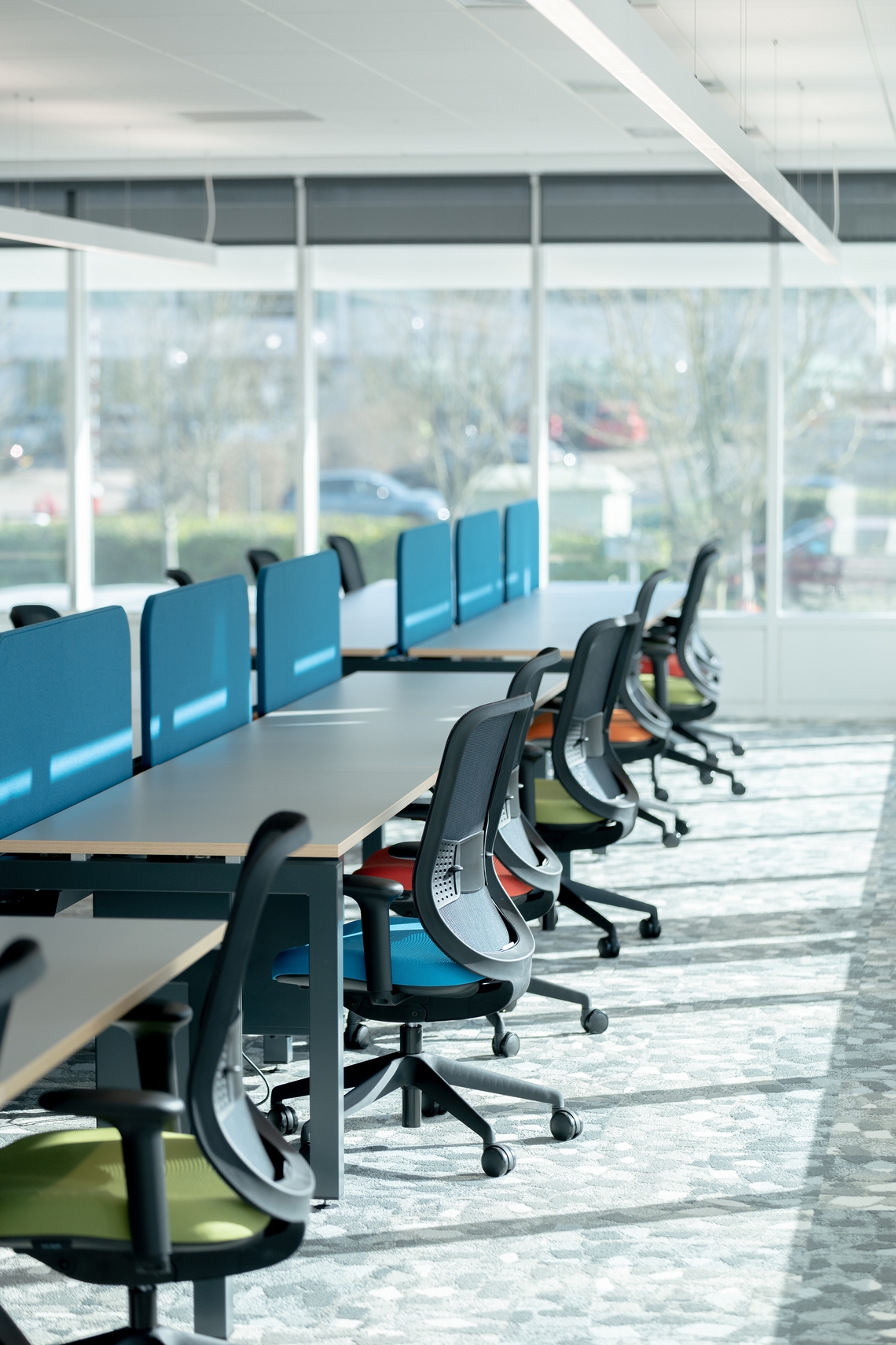 Focussed on creating a truly immersive brand experience, the use of graphics and colour throughout the space were key. Right from the reception, the crisp design along with the bold blue and white logo provide the starting note for the feel of the rest of the space. Large windows allow sunlight to stream into the open-plan offices and is complimented by the light and modern furniture. Working with ACS, we supplied our Mono Desking providing Reed with a robust and modular bench desking system that is not only height-adjustable but features a patented anti-trap finger mechanism. Customized to their design, the blue dividers and grey desk finish blends in with their chosen colour scheme.