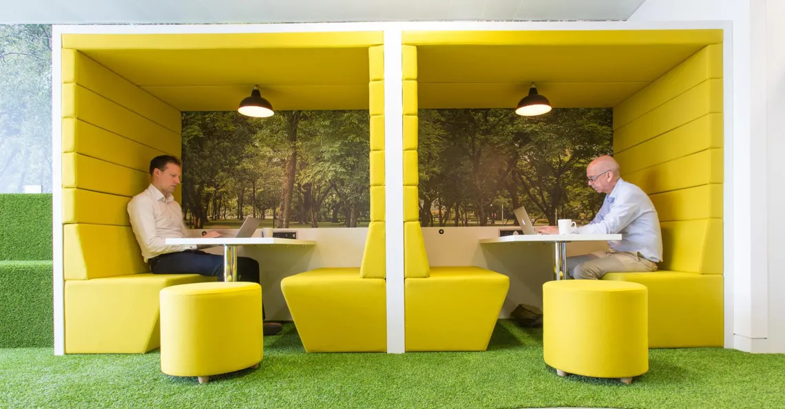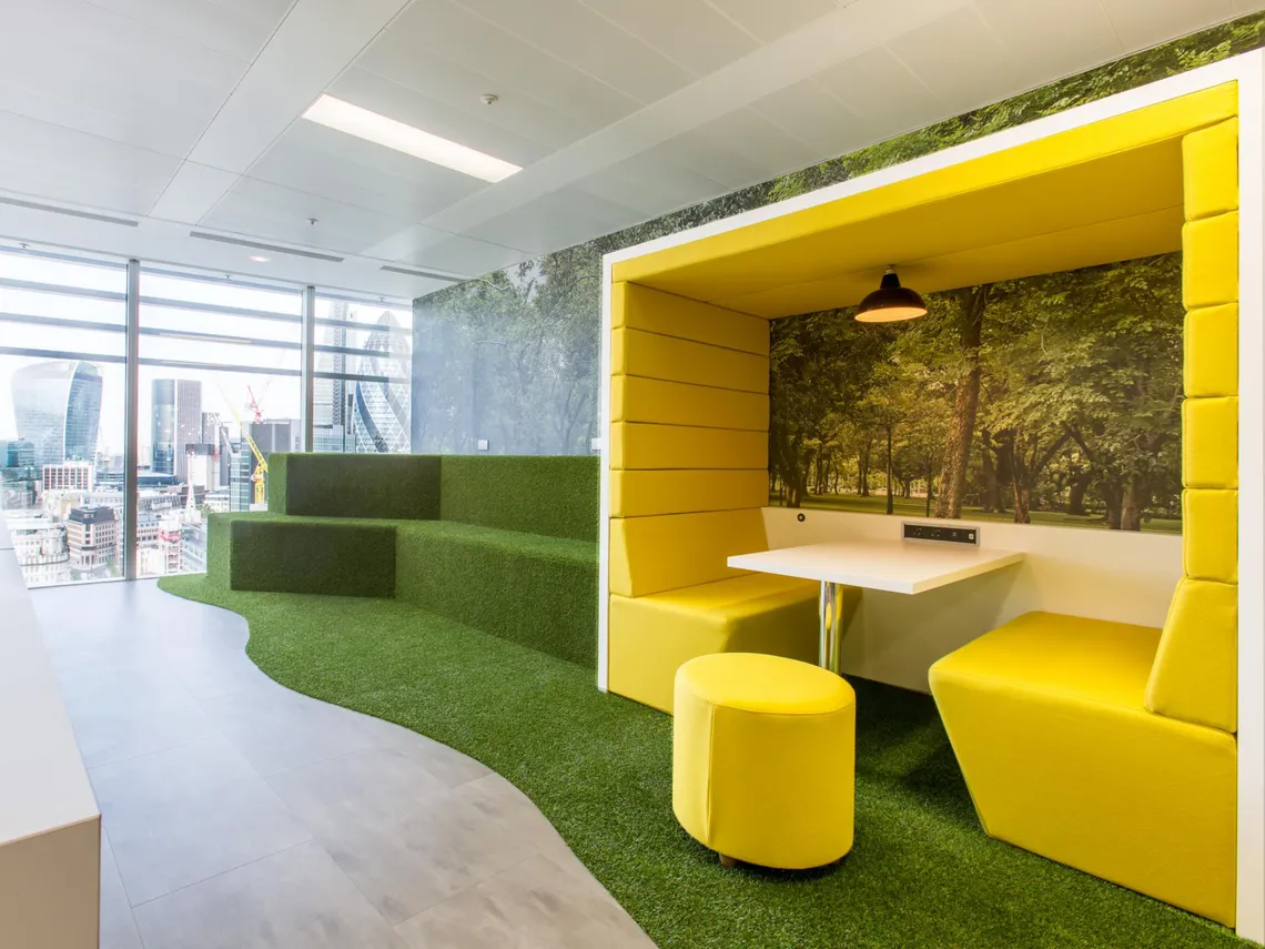 With Spectrum’s design skills and Spacestor’s dynamic workspace furniture, we created diverse breakout areas with Railway Carriages in vibrant colours to fit in with the workspace theme.