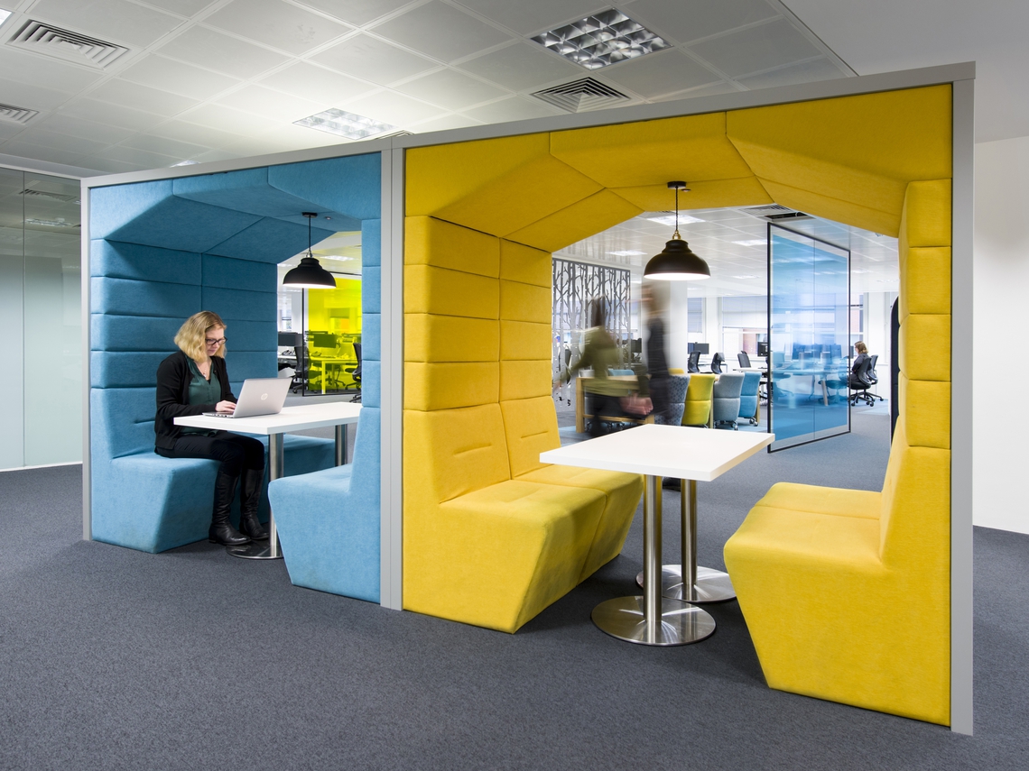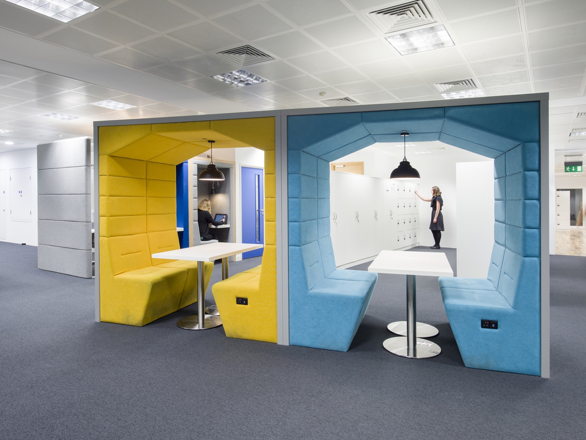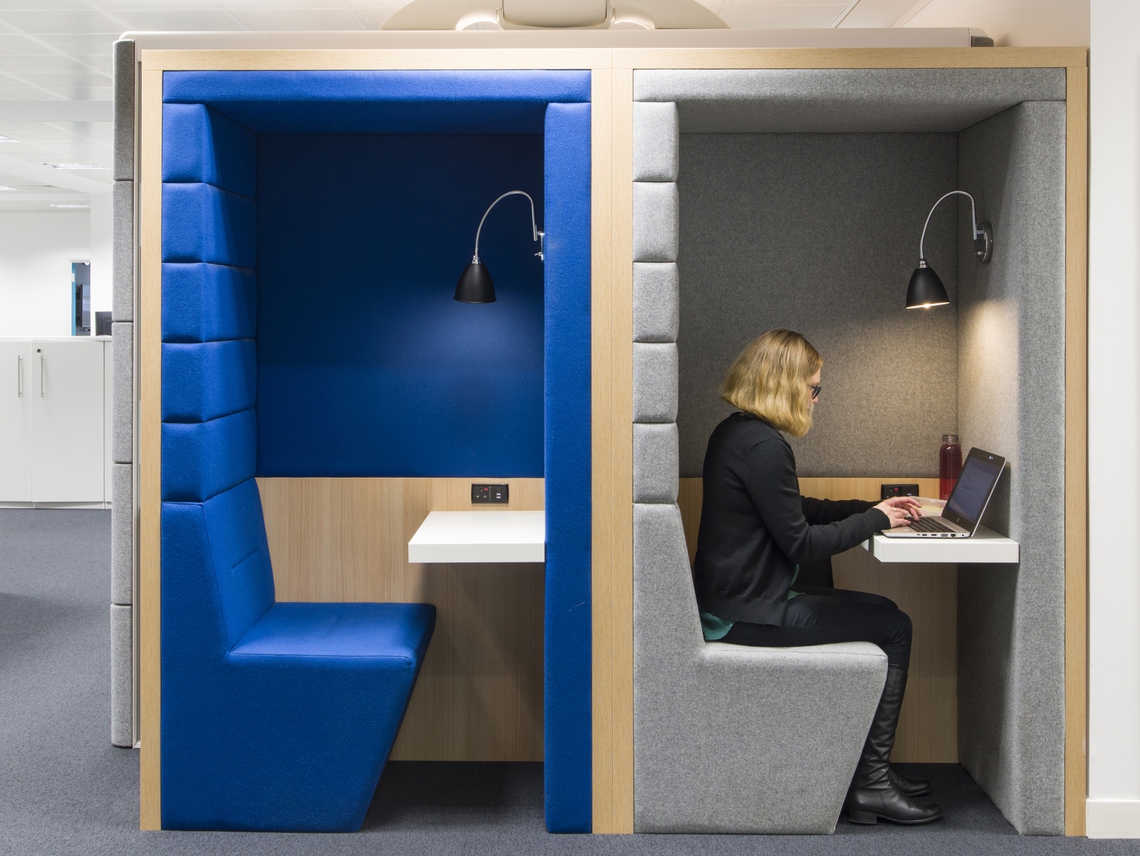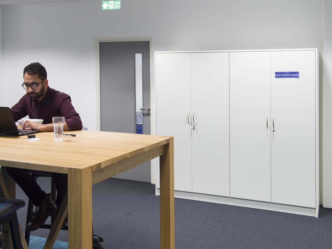 We installed two-person Railway Carriages and one-person Phone Booths to create intimate, dedicated workspaces offering extra calm and concentration; HotLockers for staff to store their belongings in as they move around the office; and a variety of shelving and storage units that keep the office airy, uncluttered and bright.