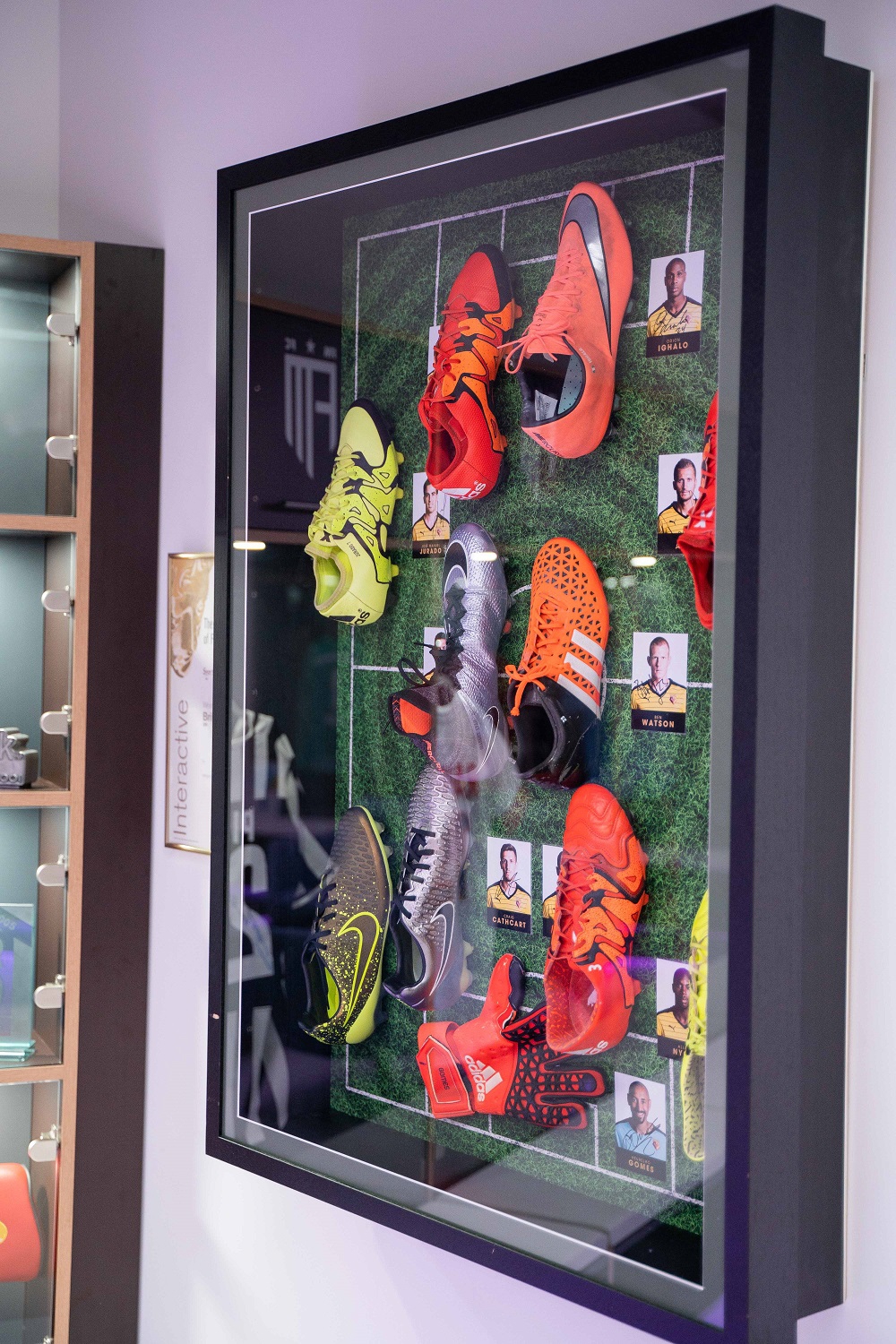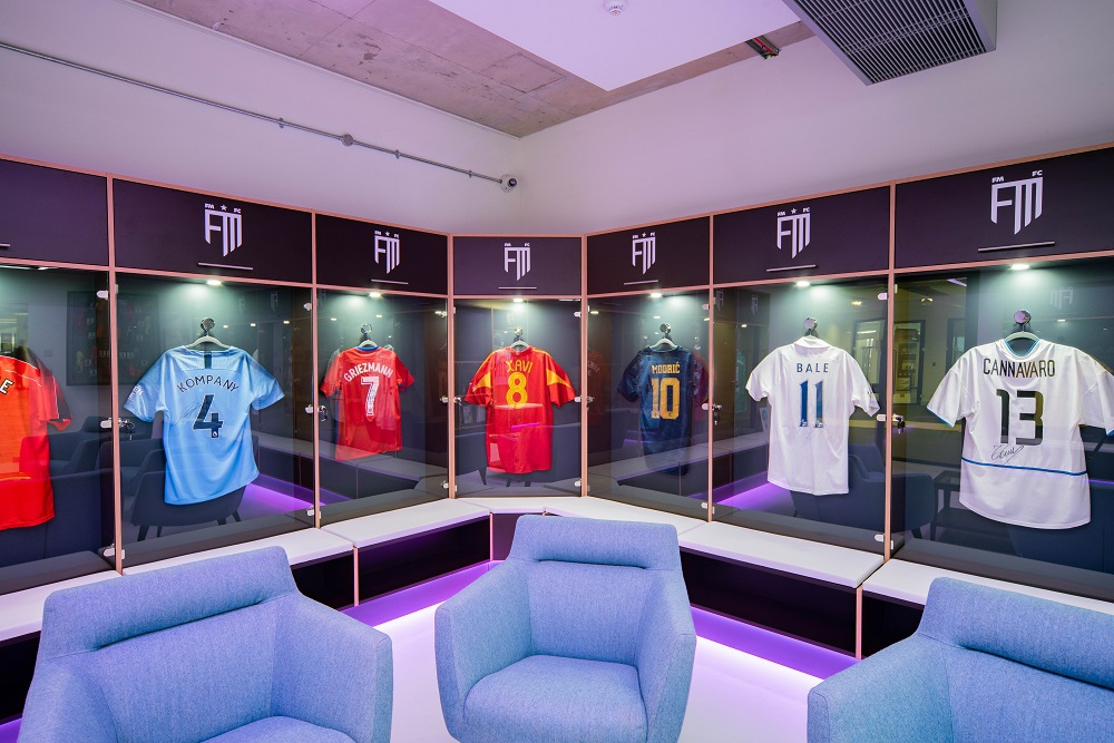 Providing personal storage is also essential to elevating the employee experience, and with this design, they have gone a step further to customize each of the locker doors with football-esque colours and fonts for the locker numbers. Perpetuating this motif further, the centrepiece of the space is the breakout area, which is built to feel exactly like a sports bar, providing the perfect breakout space inside and outside of work hours.