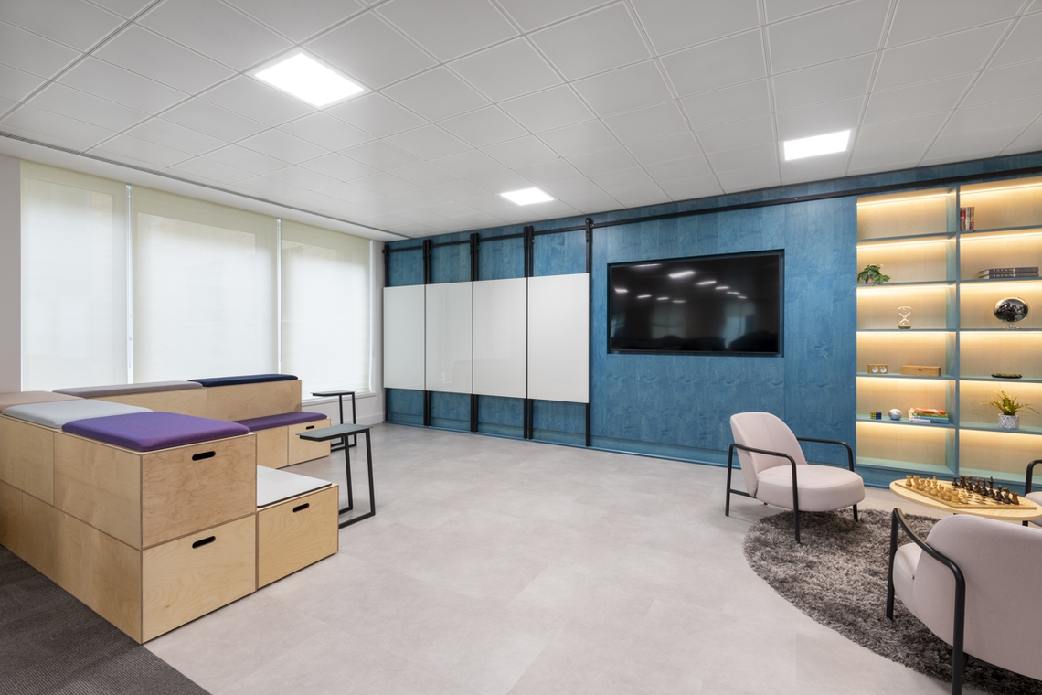 Residence Max was strategically placed to seamlessly blend with the overall design, ensuring employees can maintain focus while still allowing natural light to flow through, creating an environment that fosters both productivity and well-being.