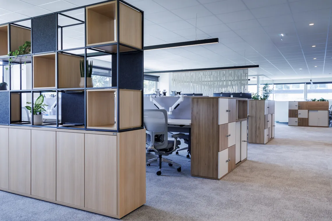 Palisades II have been used to create refined divisions within the open-plan space, offering both physical zoning and aesthetic refinement. These elements helped define different work zones without sacrificing openness, supporting fluid transitions between tasks and promoting a sense of autonomy and movement throughout the day.