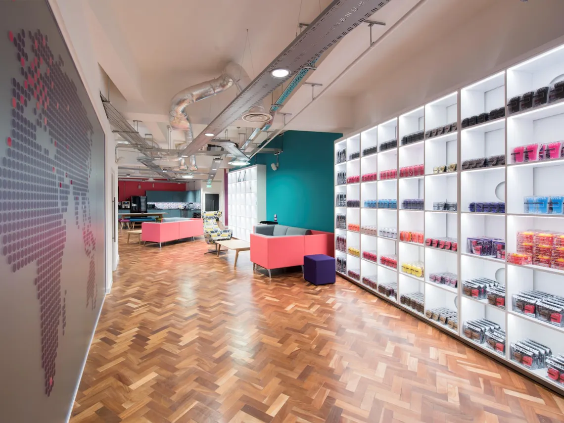 An innovative storage solution for an innovative company was needed, and we certainly delivered! The end-client, Tangle Teezer, is a leading manufacturer of hairbrushes who wanted a unique and creative storage system. Working in co-ordination with Oaktree Interiors, we supplied an incredibly colourful bank of our modular HotLockers. On a background of modern white gloss, we customised the doors with numbers and bright bursts of colour. The final result was an eye-catching locker system that made a bold statement and fitted in perfectly with their quirky office design. We also supplied a number of white Storage walls, which we fitted into some tight spaces – including some curved walls! From rainbow-esque to minimalist white, this project covered both ends of the spectrum and everything in between. Want to find out more? We’d love to get in touch – click here to contact us!