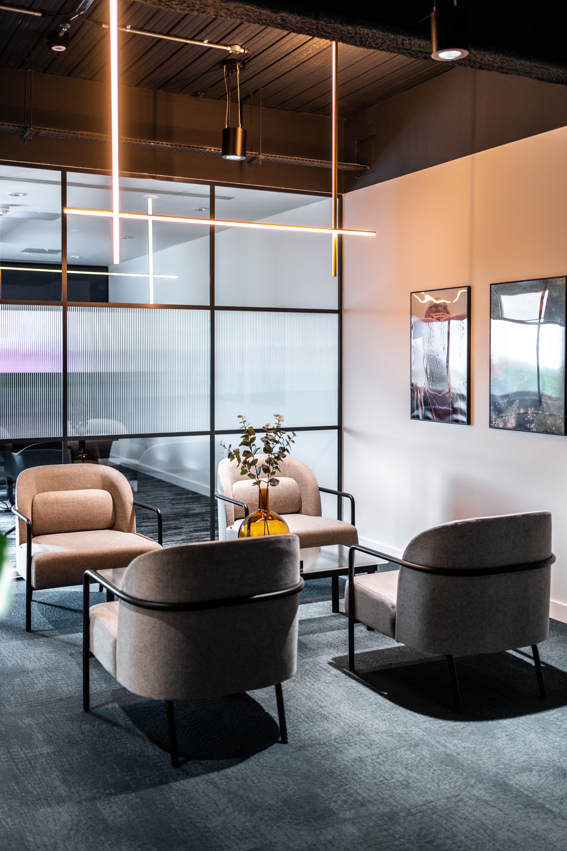 These spaces empower employees throughout the organisation to choose the right space for their tasks, as well as encourage them to take a moment to rejuvenate, promoting staff well-being in the office. Complementing this is the thoughtful incorporation of biophilia, especially within the traditional desking areas to add a dynamic touch to the environment.