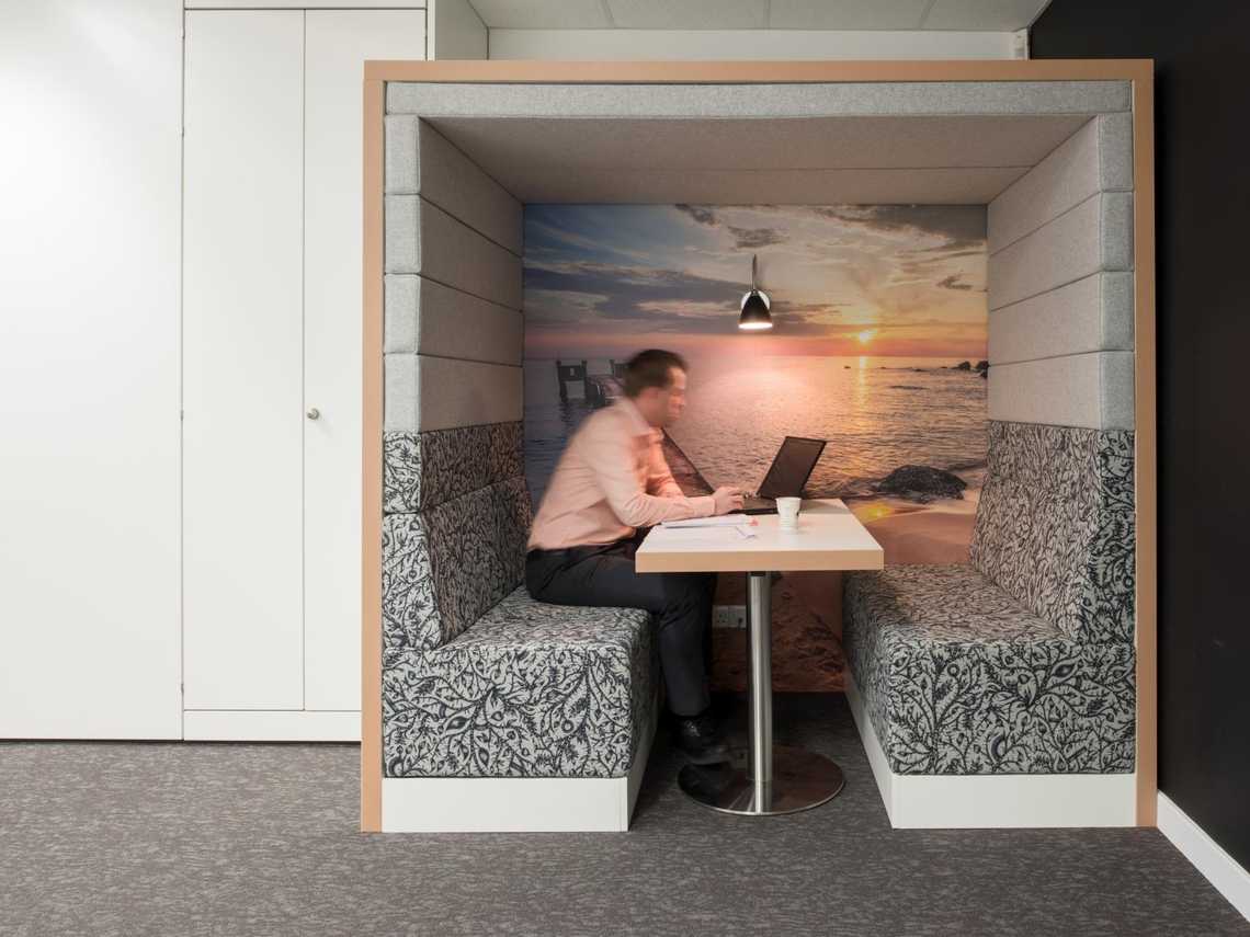 ‘Booths are ideal for quiet meetings when there are just a few people involved, and you still have space to put your laptop on the table and have a discussion. You can just imagine you’re in Starbucks!’