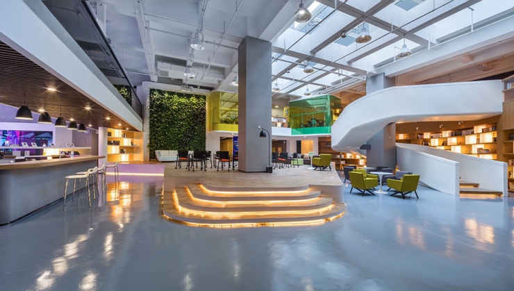 China's largest residential real estate developer has created a workspace that boasts a vibrant and...