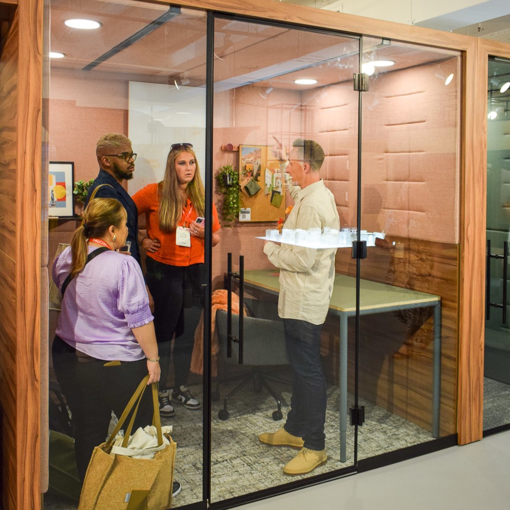 And our two collaborative Portals - Portals Huddle, a private space for 2-6 people and Portals Room, a modular meeting room which answers the meeting room question of today.